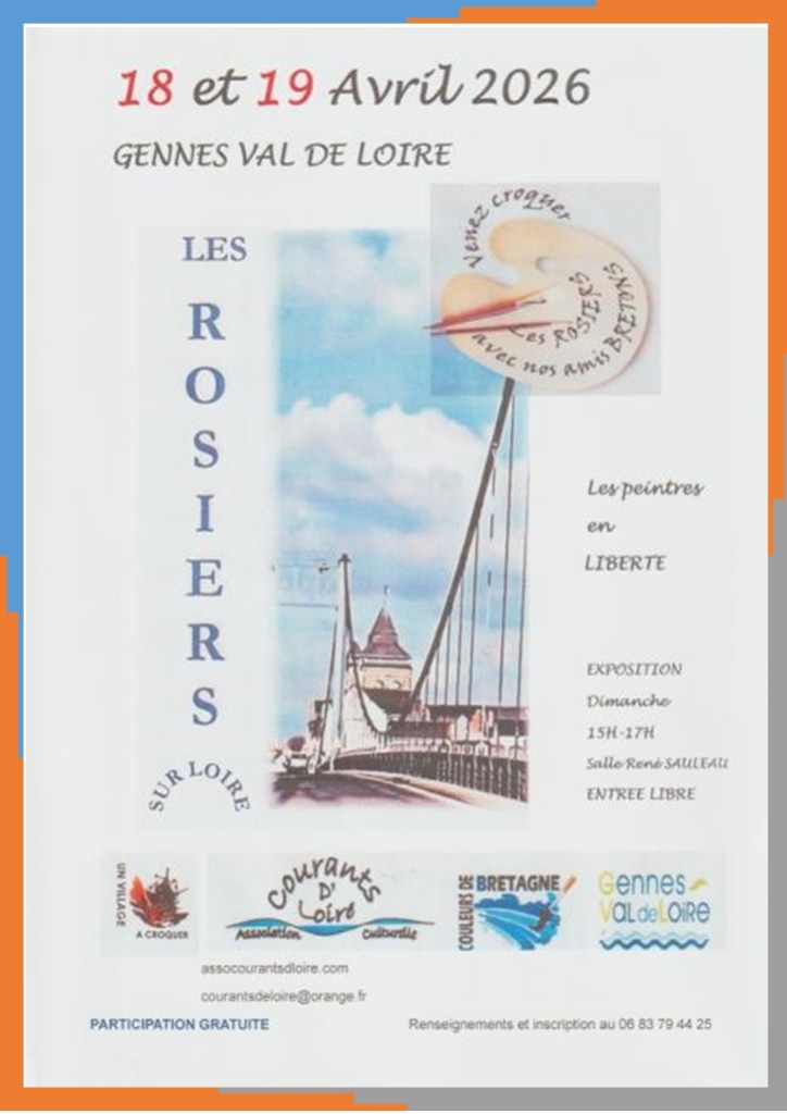 Les samedi 18 et dimanche 19 avril 2026, l’association culturelle Courants d’Loire accueille une cinquantaine d’artistes peintres bretons pour un week-end placé sous le signe de la création et du patrimoine. Durant ces deux journées, les artistes investiront les rues et les bords de Loire pour croquer sur le vif l’âme de ce village ligérien : maisons de tuffeau, toits d’ardoise et paysages ligériens baignés de lumières et de couleurs pastelles.