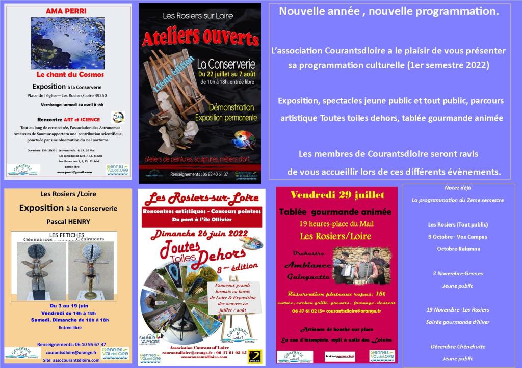 Mar4 Lettre info 1er semestre Publié le 4 mars 2022 par Asso culturelle "Courants d'Loire" aux ROSIERS /LOIRE Par défaut ASSOCOURANTSDLOIRE (ART/ SPECTACLES VIVANTS/TABLEE GOURMANDE ANIMEE Partager sur X(ouvre dans une nouvelle fenêtre) X Partager sur Facebook(ouvre dans une nouvelle fenêtre) Facebook Email a link to a friend(ouvre dans une nouvelle fenêtre) E-mail J’aime chargement…